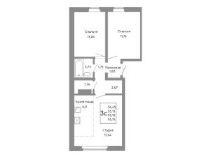 Продаётся 3-комнатная квартира в строящемся доме (Дом 13), срок сдачи: II-кв. 2027, общей площадью 53.92 кв.м., на 8 этаже.