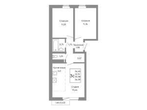 Продаётся 3-комнатная квартира в строящемся доме (Дом 13), срок сдачи: II-кв. 2027, общей площадью 53.92 кв.м., на 3 этаже.