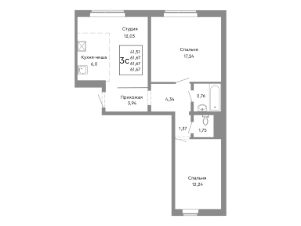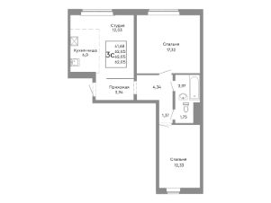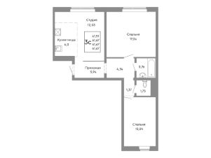 Продаётся 3-комнатная квартира в строящемся доме (Дом 13), срок сдачи: II-кв. 2027, общей площадью 61.67 кв.м., на 2 этаже.