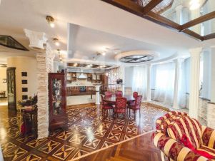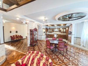 Редкая планировка!Двухэтажная квартира в центре Северо-Запада, в кирпичном доме во дворах. Расположена на 5 и 6 этажах, где на первом уровне прихожая, большая кухня с барной зоной, гостиная с лоджией, спальня с лоджией, совмещенный с/у, на втором уровне две большие спальни с лоджиями, большой совмещенный с/у, коридор со спортивной зоной. В этой квартире большое всё, и комнаты, и кухня, и санузлы... Потолки выше стандартного - 2,8 м, что тоже расширяет пространство, в данной квартире нет ощущения давления стен, чувствуется простор. Ремонт не новый, но качественный (паркет, крашенные двухуровневые потолки - дышащие, кафель, двери из массива дерева, е/о) можно заехать и жить. Остаётся вся мебель и техника, все что видите на фотографиях: кухонный гарнитур, фасады из массива, холодильник посудомоечная машинка, обеденная зона, барная зона, все диваны, кровати, шкафы, ТВ, пылесос, стиралка, водонагреватель... Толстые кирпичные стены - хорошая звукоизоляция, в подъезде на этажах по 1й квартире. Огороженная территория, охрана, рядом подземный паркинг. Ухоженный двор, с ёлками и детской площадкой. Коммунальные платежи разумные, своё ТСЖ, общедомовой счетчик на отопление. Преимущества:- дом во дворах (ни шума, ни пыли)- рядом Теорема, МИДиС, 7 Ключей- вся инфраструктура- дальний вид из окон (Запад/Восток)- большая площадь квартиры - 4 лоджии (с отделкой)- родительская спальня с гардеробом- вся мебель и техника остаётся- взрослый собственникЧистая продажа.