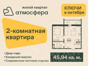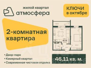 Двухкомнатная квартира в первом доме ЖК ''Атмосфера''. Общая площадь 46,00 кв.м. Увеличенная площадь пространства для отдыха (спальная комната 16,5 кв.м.). Отличный вариант для двух отдельных кроватей или спальни и полноценного рабочего места. Вместительная ниша для встроенного гардеробного шкафа. Совмещенный просторный санузел. Лоджия 5,2 кв.м. Всего 2 квартиры в кармане. Сдается с чистовой отделкой: металлическая входная дверь, линолеум, натяжные потолки, виниловые обои, межкомнатные двери. Пол в санузле и ванной выложен кафелем. Жилой квартал ''Атмосфера''. 3 дома переменной этажности. Перспективное быстро развивающееся направление Челябинска. Недалеко от вдхр. Шершни. Закрытая территория двора-парка. Вся инфраструктура рядом: садик через дорогу, детские школы в 1 остановке, магазины у дома. Экотропа, лес и свежий воздух.