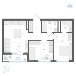 ЖК ''Ильменский'' открывает продажи! квартира 105, общей площадью 55.73 на 7 этаже.Комфортные евротрешки - сочетание уюта и функциональности. Просторная кухня-гостиная станет центром вашего домашнего уюта, идеально подходя для семейных вечеров и встреч с друзьями. Две уютные спальни обеспечат вам необходимую приватность и спокойствие для полноценного отдыха.ЖК ''Ильменский''- новый амбициозный проект от ООО СЗ ''Би.Ай.Ди Групп'' Комплекс состоит из двух домов комфорт-класса, один из которых-семнадцатиэтажный, что делает постройку самым высоким зданием города!Преимущества ЖК''Ильменский'':Комфортное жилье: Планировочные решения для любого состава семьи: от студий до четырехкомнатных квартир.Собственная котельная: Забудьте о перебоях с отоплением! Наша котельная обеспечит стабильное тепло и экономию на коммунальных платежах.Инфраструктура: Наслаждайтесь всеми благами жизни в цетре города — магазины, школы, больницы и главный ТРК Миасса в шаговой доступности.Специальные условия покупки: Возможна рассрочка под 0%. Условия согласовываются в индивидуальном порядке. Подробности у наших менеджеров!