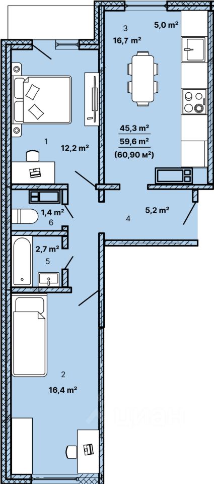 60 м² · Этаж 6 из 21