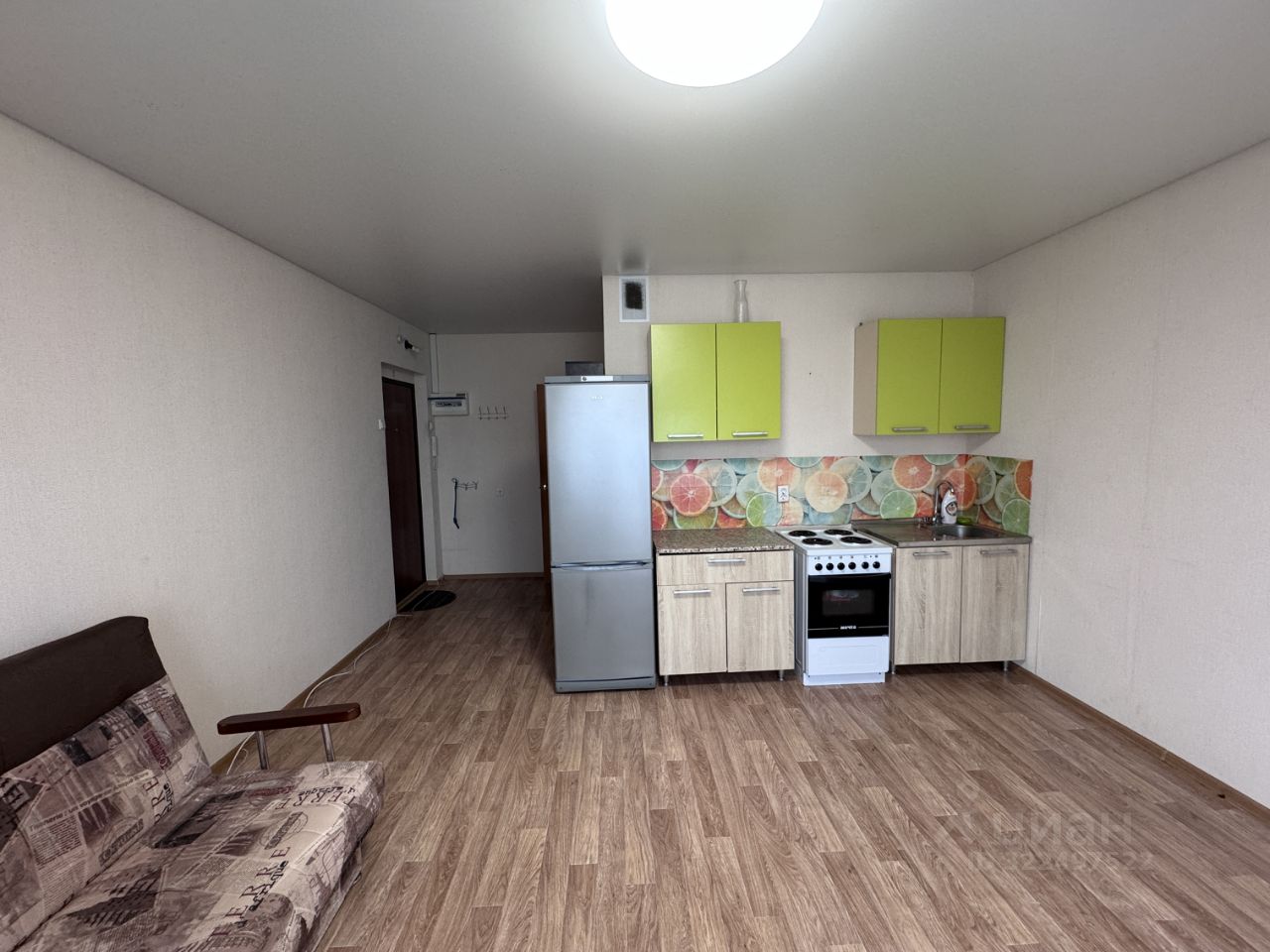 Сдаётся без комиссии студия на длительный срок. Привезём в ближайшие дни шкаф и стол, остальное необходимое для проживания есть, очень красивый вид из окна. Остановка рядом с домом. Квартира очень теплая.
