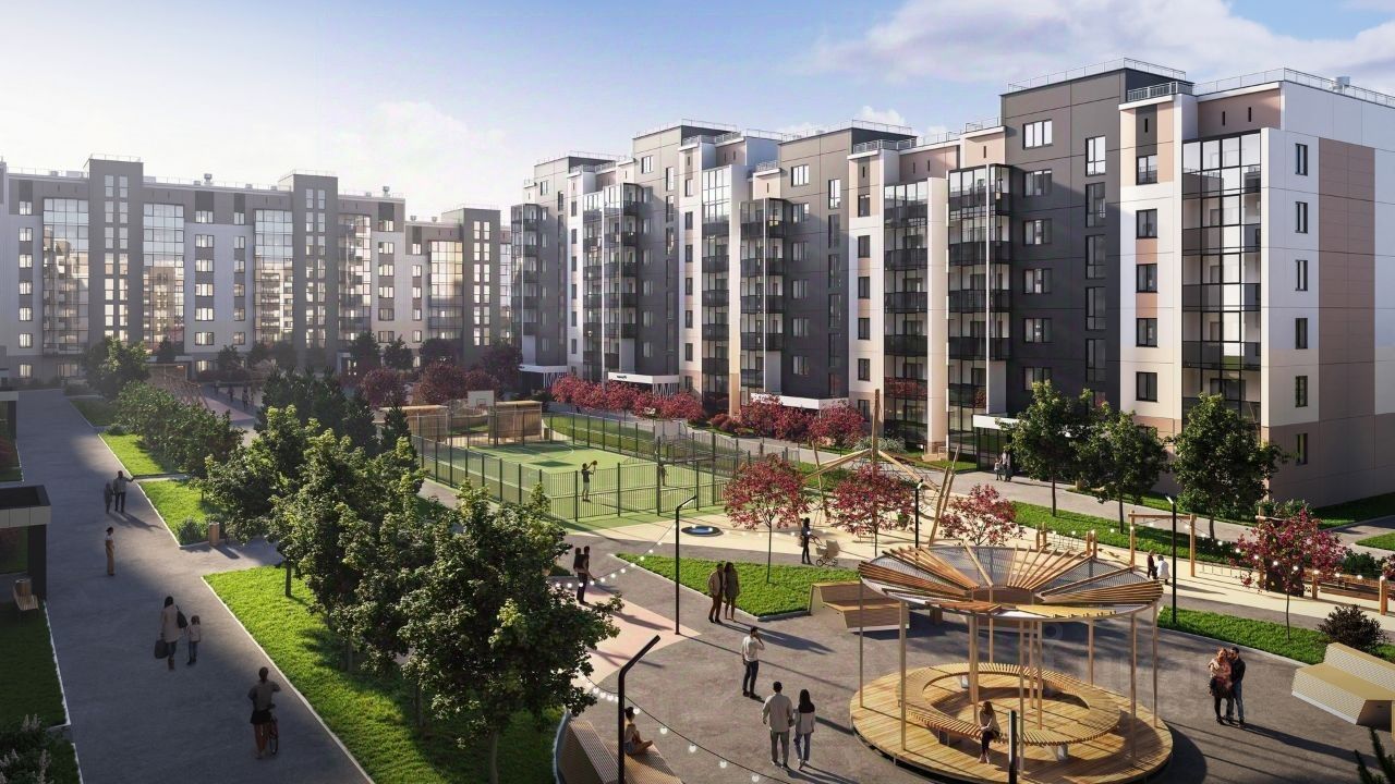 Просторный закрытый двор-парк с зелеными насаждениями и пешеходными дорожками создает уютную атмосферу и располагает к общению между жителями. Благодаря приватному двору без автомобилей, дети и взрослые чувствуют себя безопасно и свободно.
