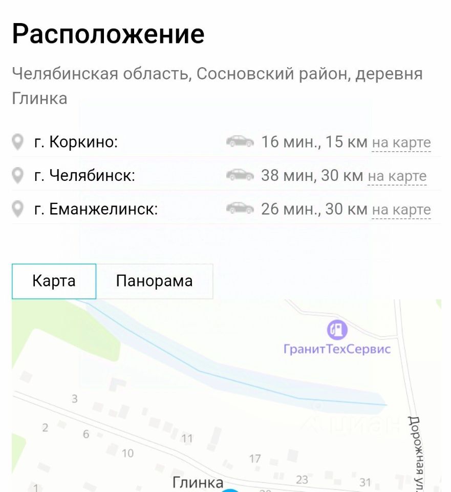 Локация: 30 км от города Челябинска по Троицкому тракту, добраться можно на рейсовом автобусе номер 116, 133 от Центрального вокзала города Челябинска до остановки Глинка! ( Ориентир Коркино, Дубровка ,Вознесенка, Полевой)