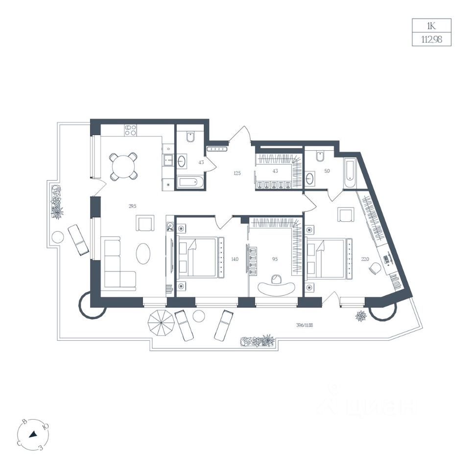 Общая площадь112,98 м2