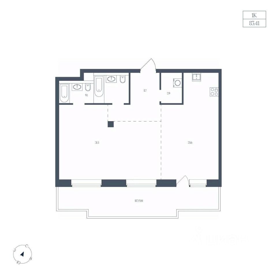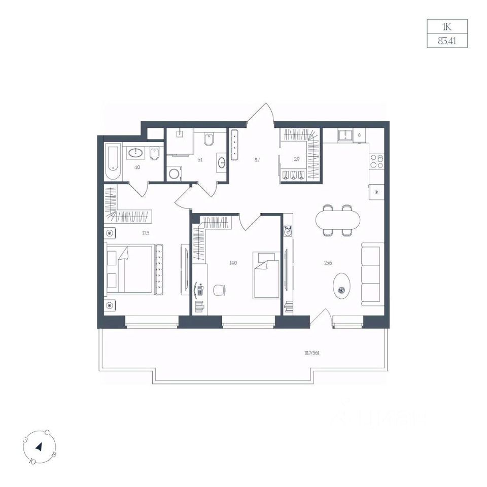 Общая площадь83,41 м2