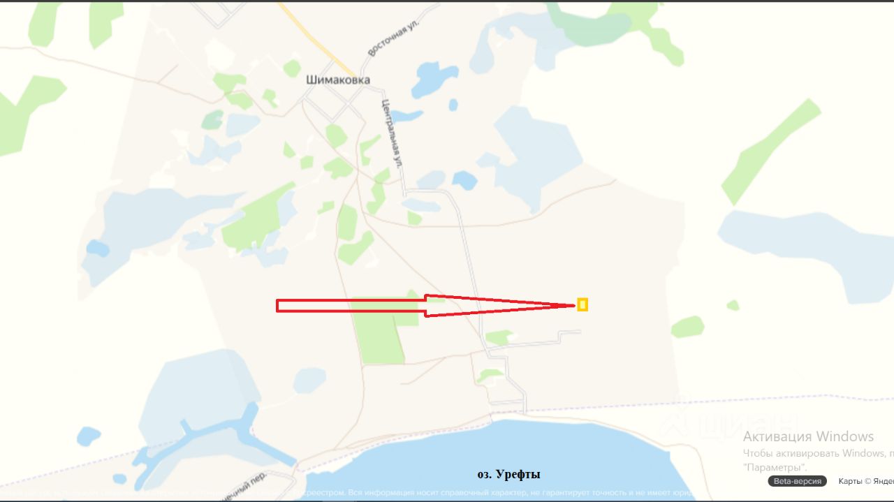 Земельный участок правильной формы, в новой нарезке за д. Шимаковка рядом с озером Урефты. Расположение на карте указано верно. Земли населенных пунктов, назначение- для ведения личного подсобного хозяйства (разрешается возведение индивидуального жилого дома).