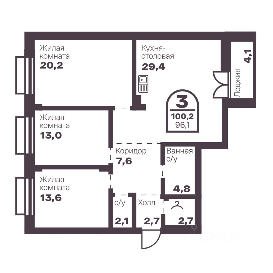 Общая площадь96,1 м2