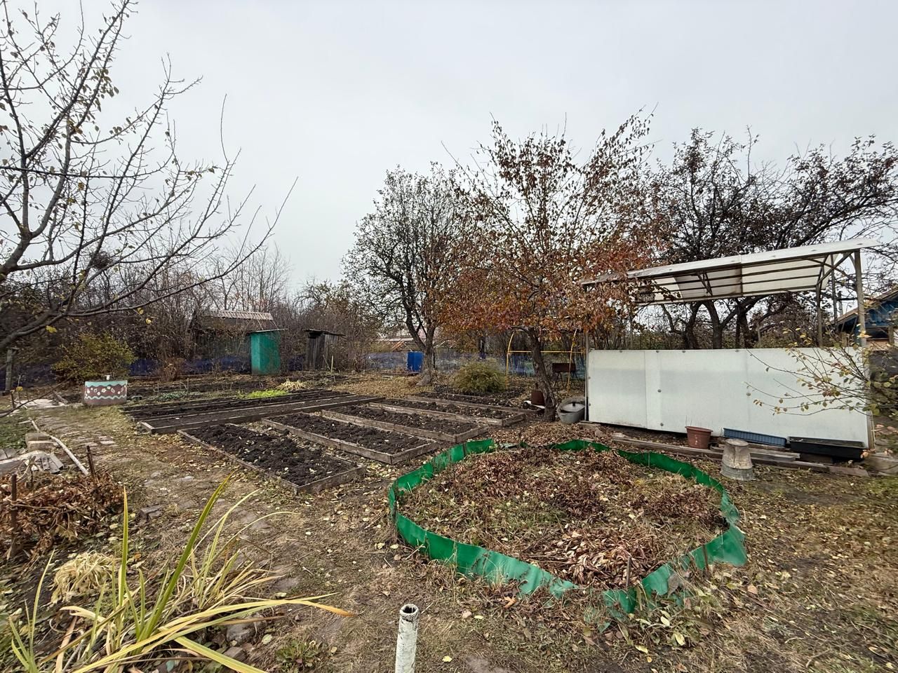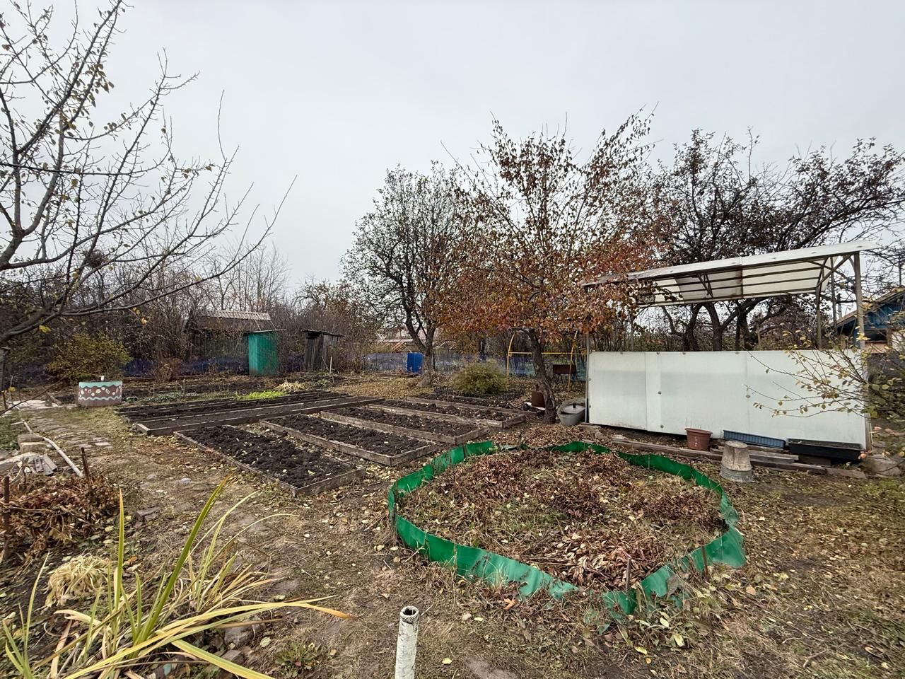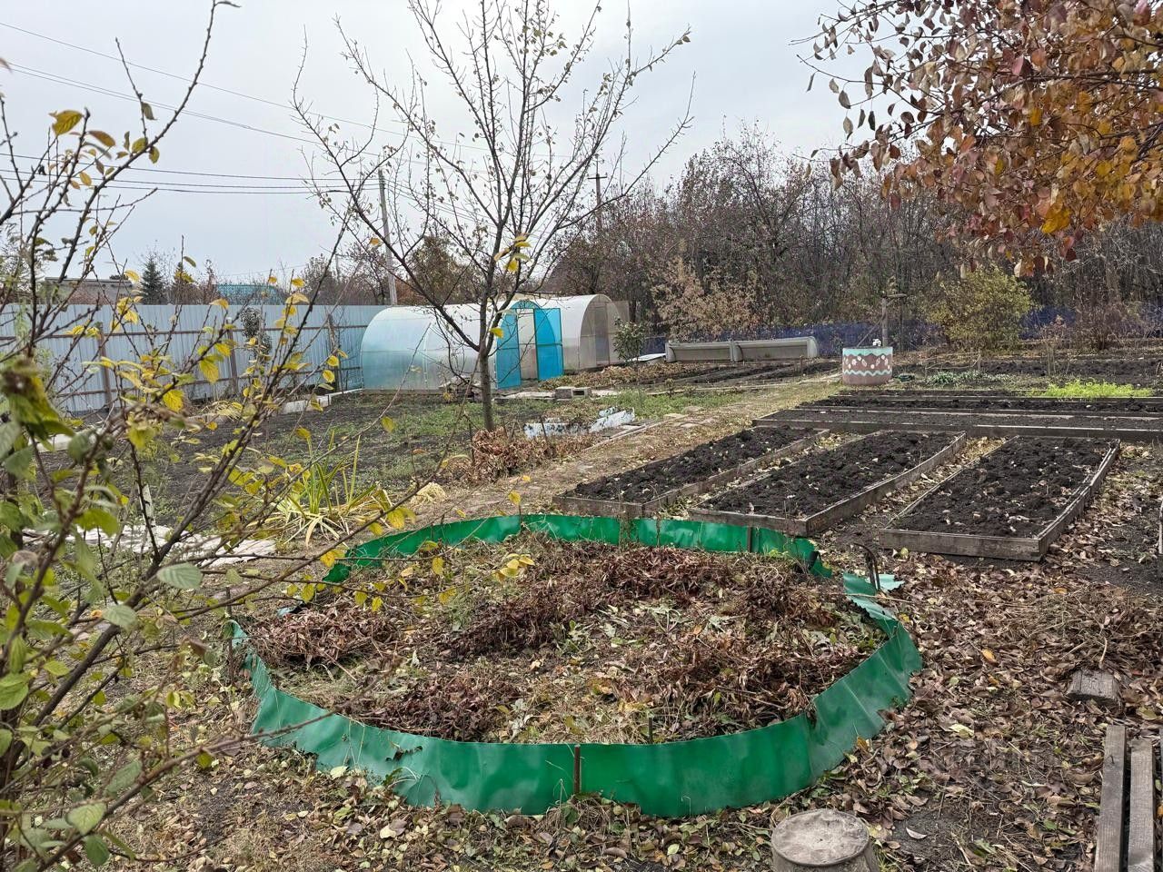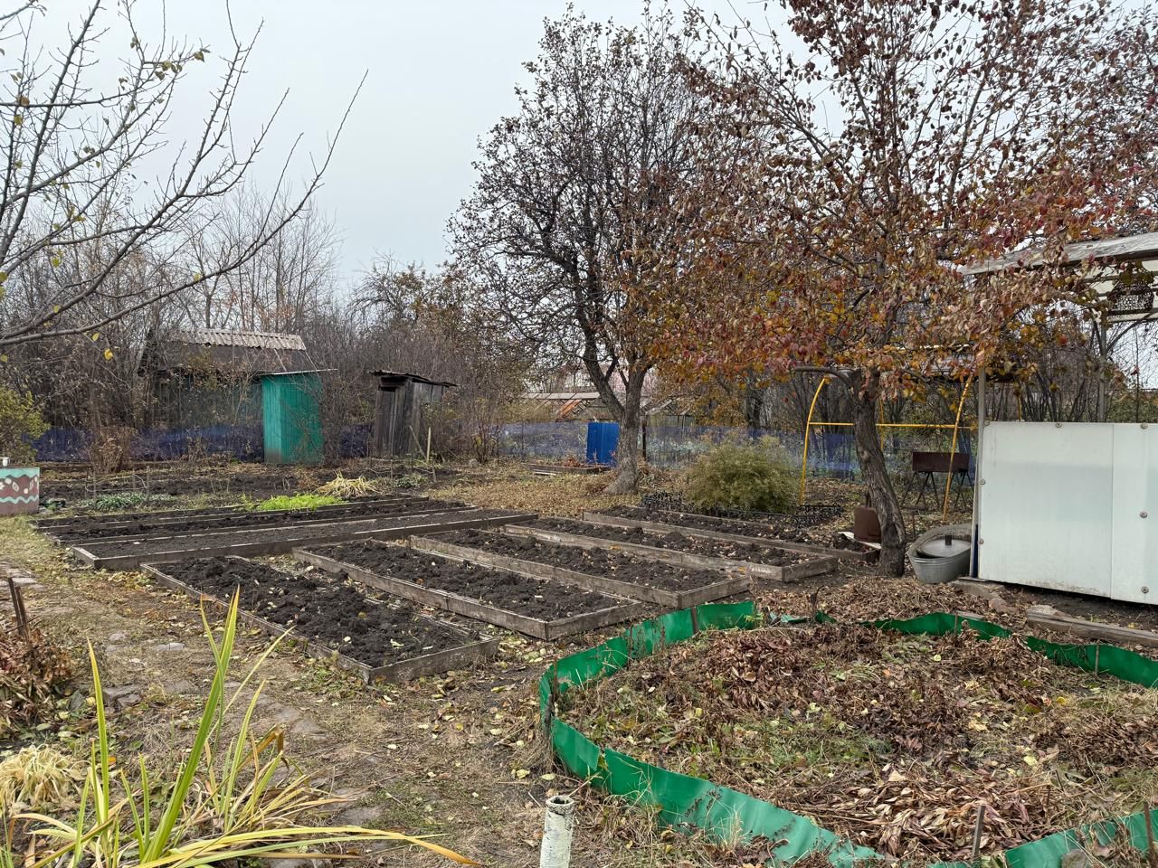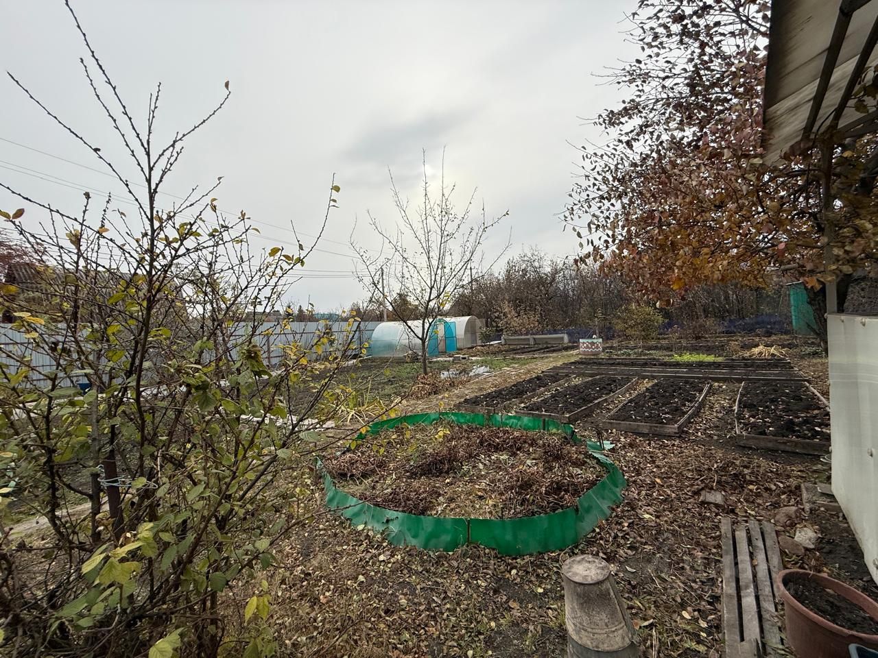 На участке стоят 2 теплицы 3х4, парник 4х1.
