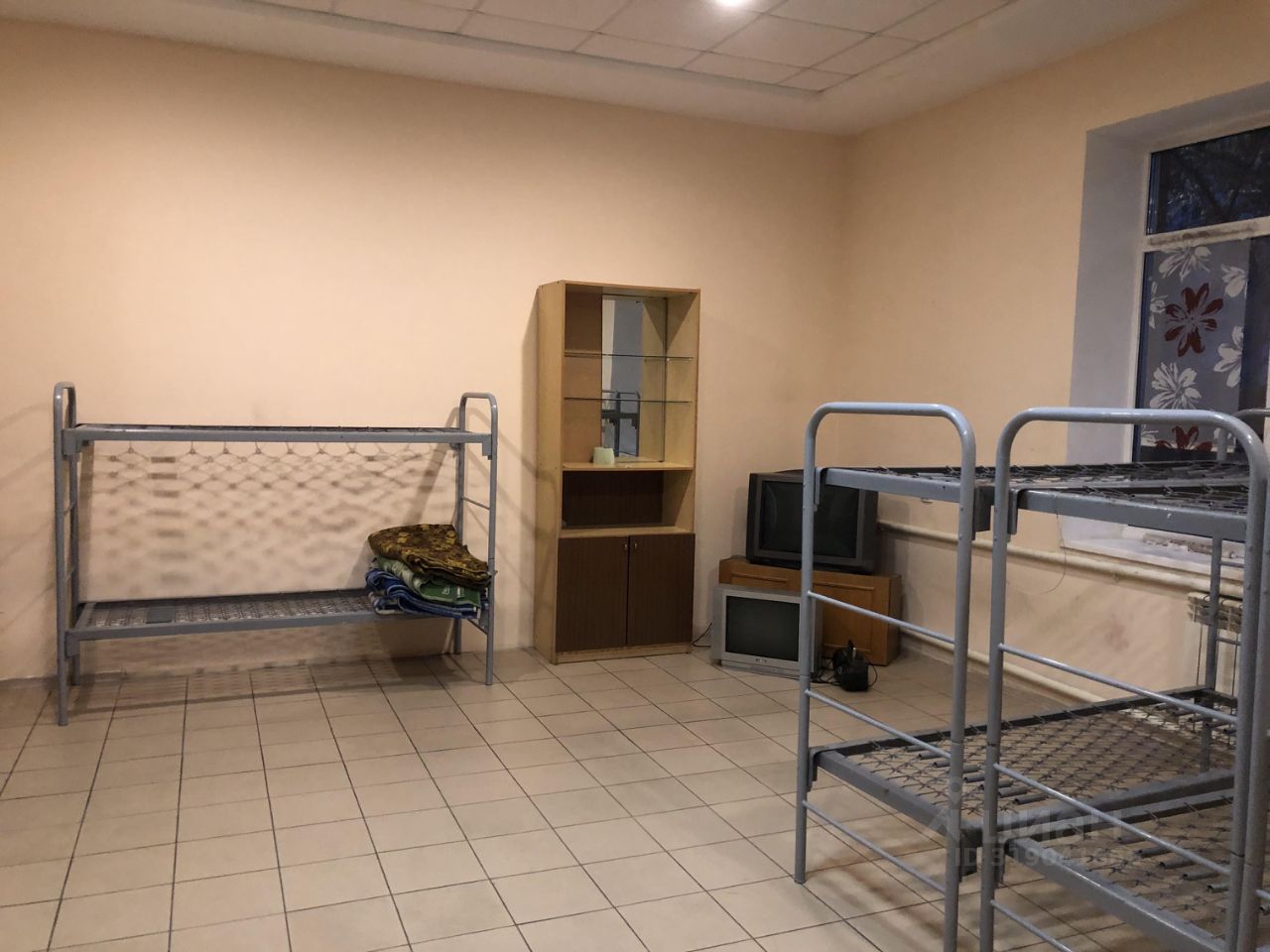 две комнаты, санузел. Мебель необходимая есть, холодильник, стиральная машина, плита, телевизор. 15 спальных мест. Можно командированным до 25 человек.