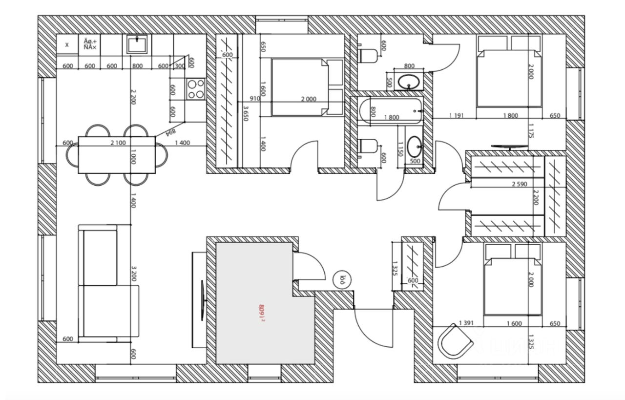 Асфальт до участка. Электричество 15 кВт. Площадь - 115 м2 Просторная кухня гостиная со вторым светом типа крыша потолок, 3 полноценные спальни, 2 санузла (один при мастер-спальне), гардеробная, котельная-постирочная. Высота потолков 2,9 м. КОНСТРУКТИВ Фундаментклассический загл. ленточный (60 м3. бетона марки B20) перекрытие - железобетонная монолитная армир. плита 150 мм по гидроизолированному утепленному пенополистеролом высокой плотности основанию. Пол стяжка по маякам по тёплым полам толщиной 80 мм с укладкой теплоизола и армирующих сеток. Стены газоблок 400мм./облицовочный кирпич КЕРМА-ПРЕМИУМ Diamond Braun. Армопояс. Перегородки - кирпичные, проемы под монтаж дверей высотой 2400 мм. Оштукатурино гипс и отшпатлевано под чистовую отделку. Крыша простая вальмовая по мауэрлату 100х150 мм. Стропила 250 мм., ОСБ 3 - 9 мм, утепл. мансардного контура на 250 мм, утепление потолков 200 мм. Эковер Карнизы, капельники, отторцовки и софиты из металла VIKING MP. Черепица Драконий зуб SHINGLAS Люк-лестница FAKRO. Остекление теплый алюминий Татпроф(матовые light-grey) Стеклопакеты энергосбер. УФ защитой и дверью на планируемую террасу (выход из кухни-гостинной) Установлены подоконники VITRAGE-DESIGN Дверь входная премиум высотой 2.2 м. от PORTALLE. Терморазрыв, спецокрас, подогрев коробки, цвет VESUVIO c тонир. остеклением установлена в проем (стоимость двери более 200 т.р.) Вентиляция - вент шахты кирпичные интегрированы в межкомнатные перегородки с выходом в закровельное пространство(заказные современные зонты вентшахт) Из котельного помещения предусмотрены выводы вентиляции и дымохода в шахту для дальнейшего монтажа газового котла. Система отопления водяной теплый пол по всему дому выполнен металлопластиковой немецкой трубой SANHA с разделением на контуры с регулировкой от индивидуальных электротермостатов (в помещениях для керамических напольных покрытий кухня-гостинная/коридор-прихожая/ котельная-постирочная/санузлы/гардероб) и подогреваемые полы до 27С в помещения спален для деревянных или иных напольных покрытий с пониженной теплопроводностью. Выводы на конвекторы в спальнях и внутрипольные конвекторы в кухне гостиной и одной спальне трубой SANHA Полностью собранная автономная котельная от компании ТЕПЛОМАКС (Proterm 12 KE/14) Водонагреватель Electrolux на 100 литров. Разведено -канализацияи вода в соответствии с планировочным решением. Индивидуальная скважина 47 м.(разведена с септиком на требуемое расстояние в соответствии требованиями.) Дебит скважины не менее 2 л./сек. Канализация септик бетонный(3хд.2М) Электричество, сигнализация, интернет разведены под штукатурку. Кондиционирование - заложены трассы для сплит систем кондиционеров (В кухне-гостинной и мастер-спальне) . На фасаде установлены декоративные короба наружных блоков кондиционеров. Все этапы строительства зафиксированы на фото. Возможен подряд (ПОД КЛЮЧ) для выполнения дизайн-проекта интерьера и чистовых отделочных работ под ключ.