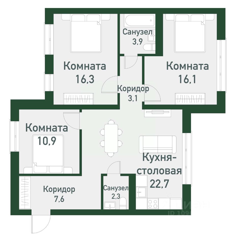 продам 3-к, Академическая, гп 6.114 498 750 ₽