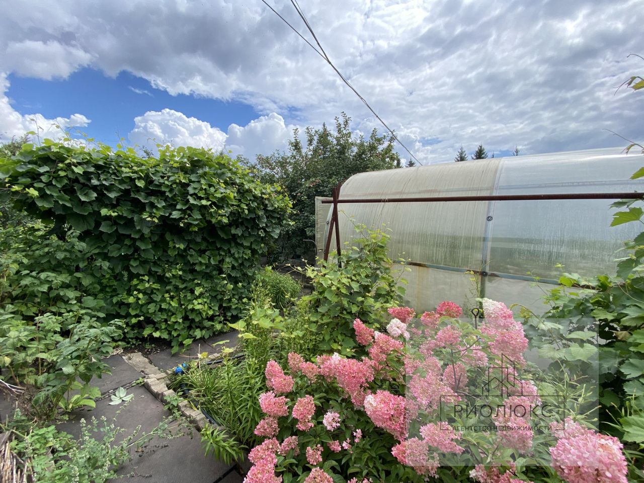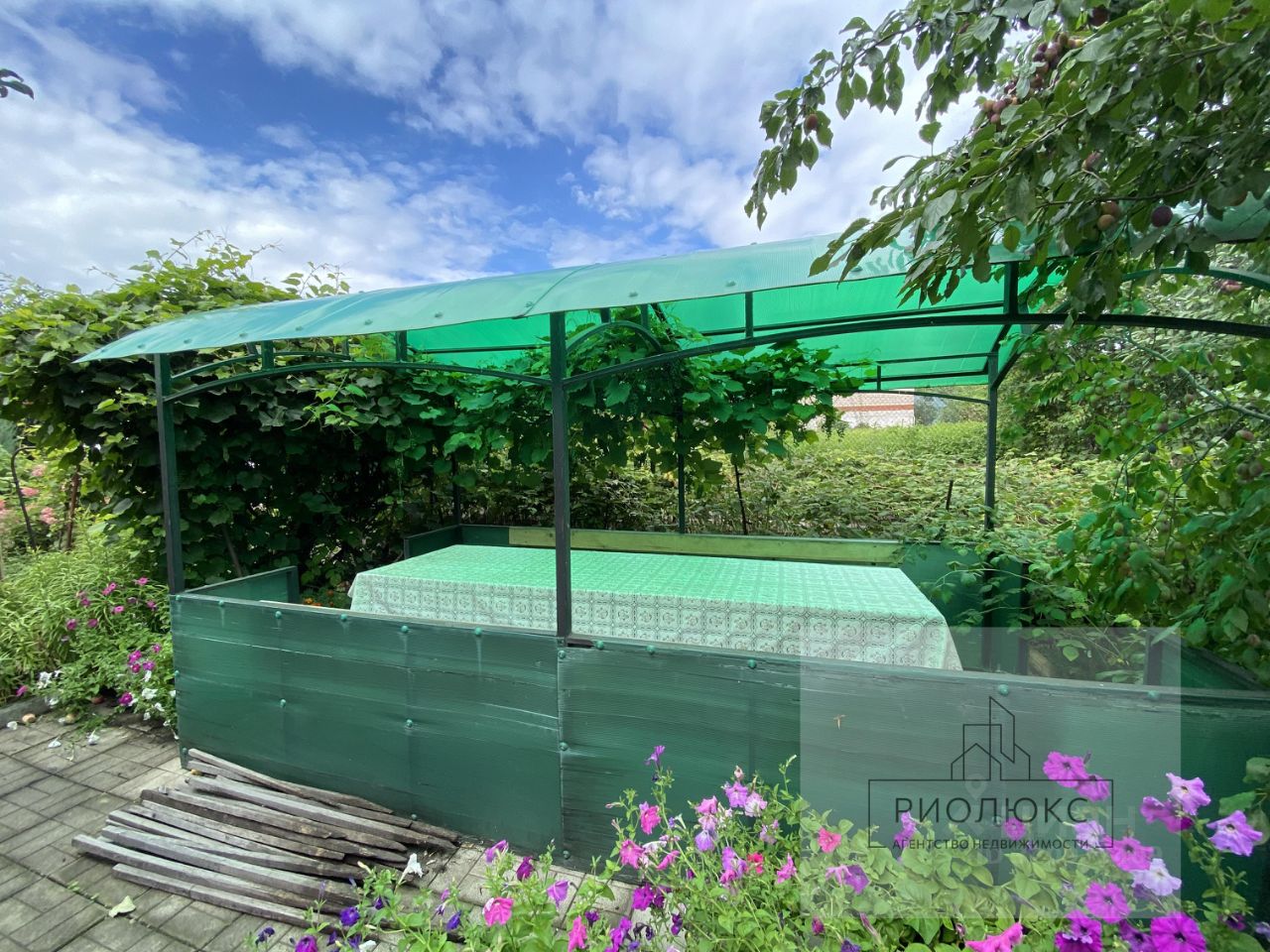 Особое внимание уделено благоустройству территории: множество различных цветов, фруктовые деревья (груши, яблони, сливы), ягодные кустарники (жимолость, вишня, смородина), виноград. Огород с помидорами, огурцами, баклажанами и перцем порадует своими урожаями.