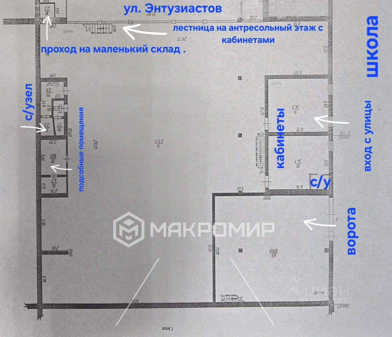 Описание: теплый склад с центральными коммуникациями (прямые договора), наличие окон (благодаря естественному свету, существенная экономия затрат по электроэнергии), общая площадь помещения 1087,5 кв.м., высота потолков 6,5 метров, монолитный бетонный пол, толщина 25 см, конструкция: стены кирпичные, железобетонные перекрытия, широкие ворота для свободного заезда грузового транспорта, состояние: готов к эксплуатации (под хранение/логистику/производство), подъезд: широкая асфальтированная дорога со стороны ул. Энтузиастов (удобный въезд для грузового транспорта), достаточное количество парковочных мест (беспроблемная парковка 24/7), до ближайшего жилого дома - 60 метров.