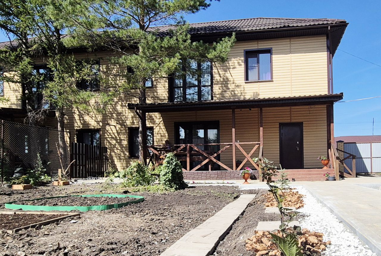 Продается новый двухэтажный дом ''дуплекс''. Первый этаж построен из сруба лиственницы, второй этаж каркасный. Современный евро ремонт с качественными материалами создает уютную атмосферу. Просторные комнаты с большими панорамными окнами обеспечивают много естественного света. На первом этаже расположена кухня-гостиная с современной техникой и обеденной зоной. В доме пять спален, каждая оформлена со вкусом. Во всём доме установлен тёплый пол. На территории участка есть баня, что станет отличным местом для отдыха. Также имеется терраса, где можно наслаждаться свежим воздухом. Участок ухожен, с хвойными насаждениями и цветочными клумбами. Дом подключен к центральному водоснабжению с собственной насосной станцией и газовому отоплению, канализация — септик.