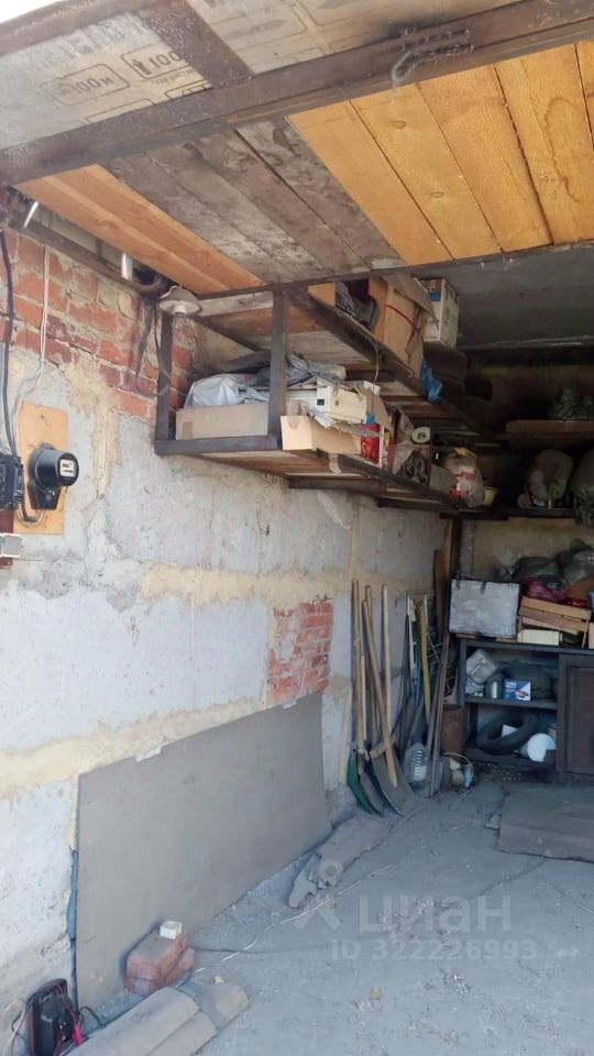 ПО ПЕРИМЕТРУ ГАРАЖА И ПО ПЕРИМЕТРУ ПОДВАЛА СТЕНЫ ОБНЕСЕНЫ ПОЛКАМИ из дерева, с массивными опорами из уголка.