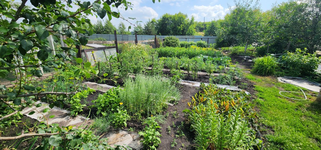 Земельный участок имеет несколько зон: - полисадник перед домом как зона отдыха. С цветником и зелёным газоном. - огород с аккуратным грядки и всеми посадками. - плодовый сад, в котором растут абрикосы( в этом году будет большой урожай),2 яблони, 2груши,жимолость,малина,смородина,клубника.