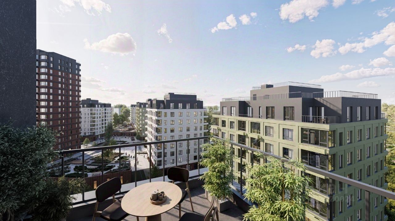В проекте — квартиры с террасами, где можно отдыхать, устраивать мини-пикники или просто наслаждаться открытым воздухом с видом на зелёный парк.