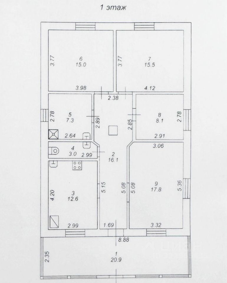 3-и спальни (15, 15 и 9 м.кв.),