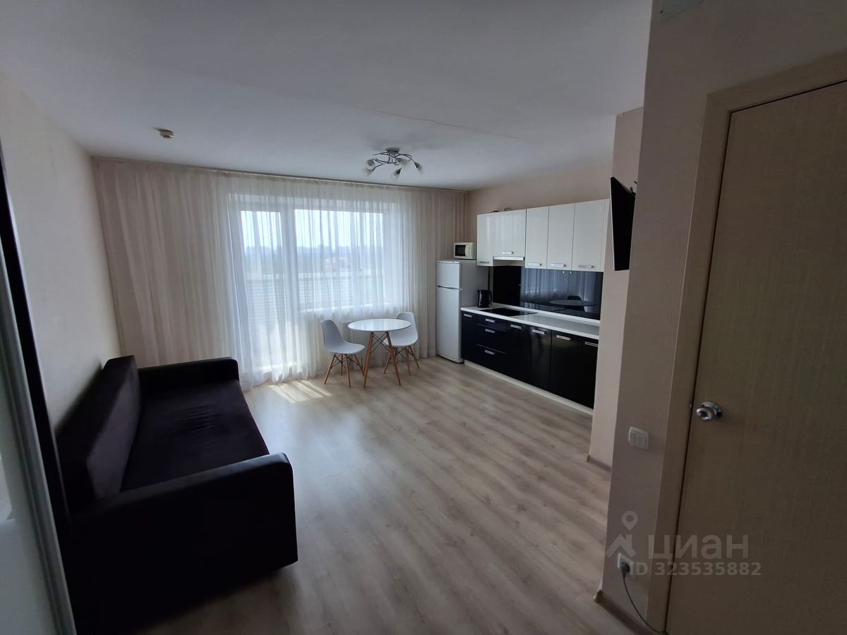 Пространство студии организовано максимально функционально: зона отдыха, кухня площадью 10 кв. м и совмещенный санузел. Также есть лоджия, где можно обустроить дополнительное место для отдыха или хранения. Окна выходят во двор, поэтому в квартире всегда тихо и уютно.