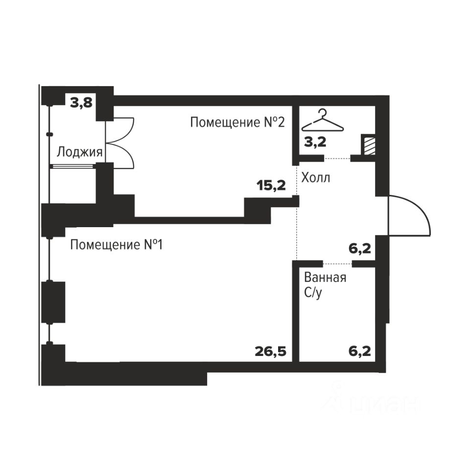 Общая площадь57,3 м2