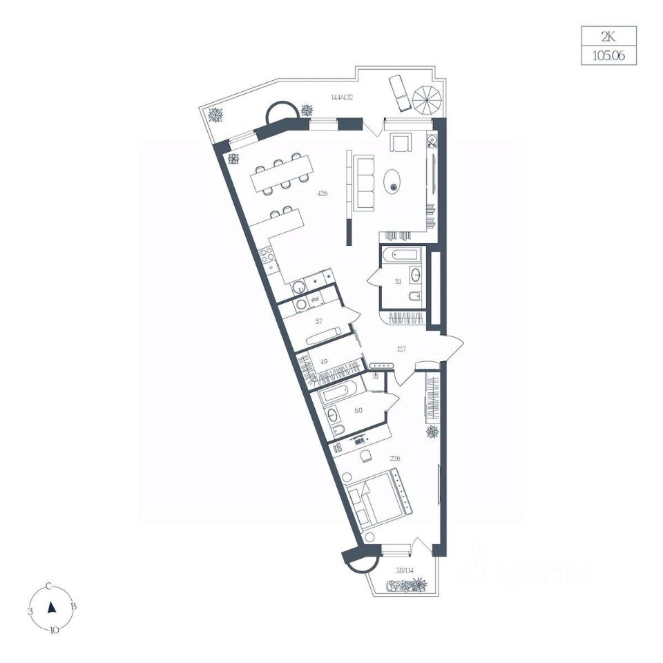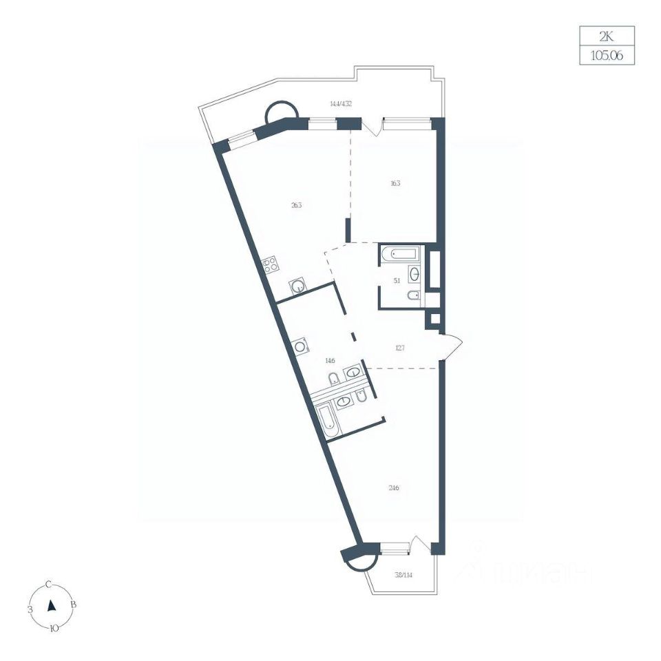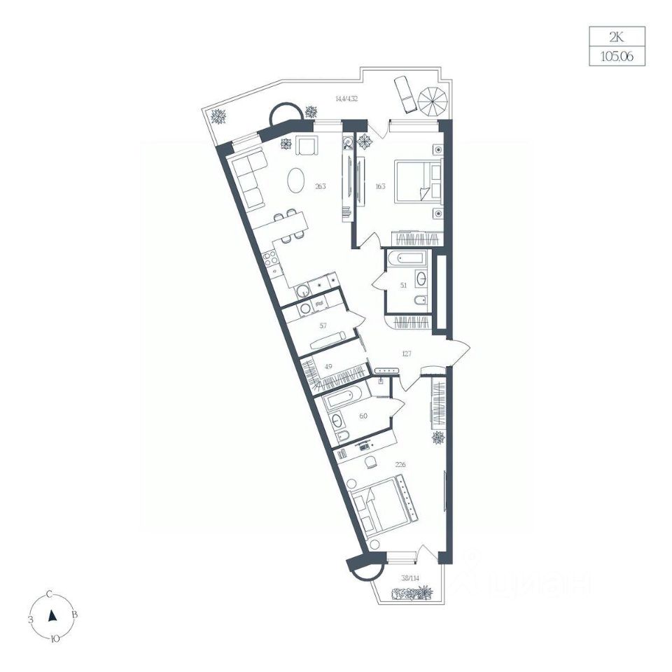 Общая площадь105,06 м2