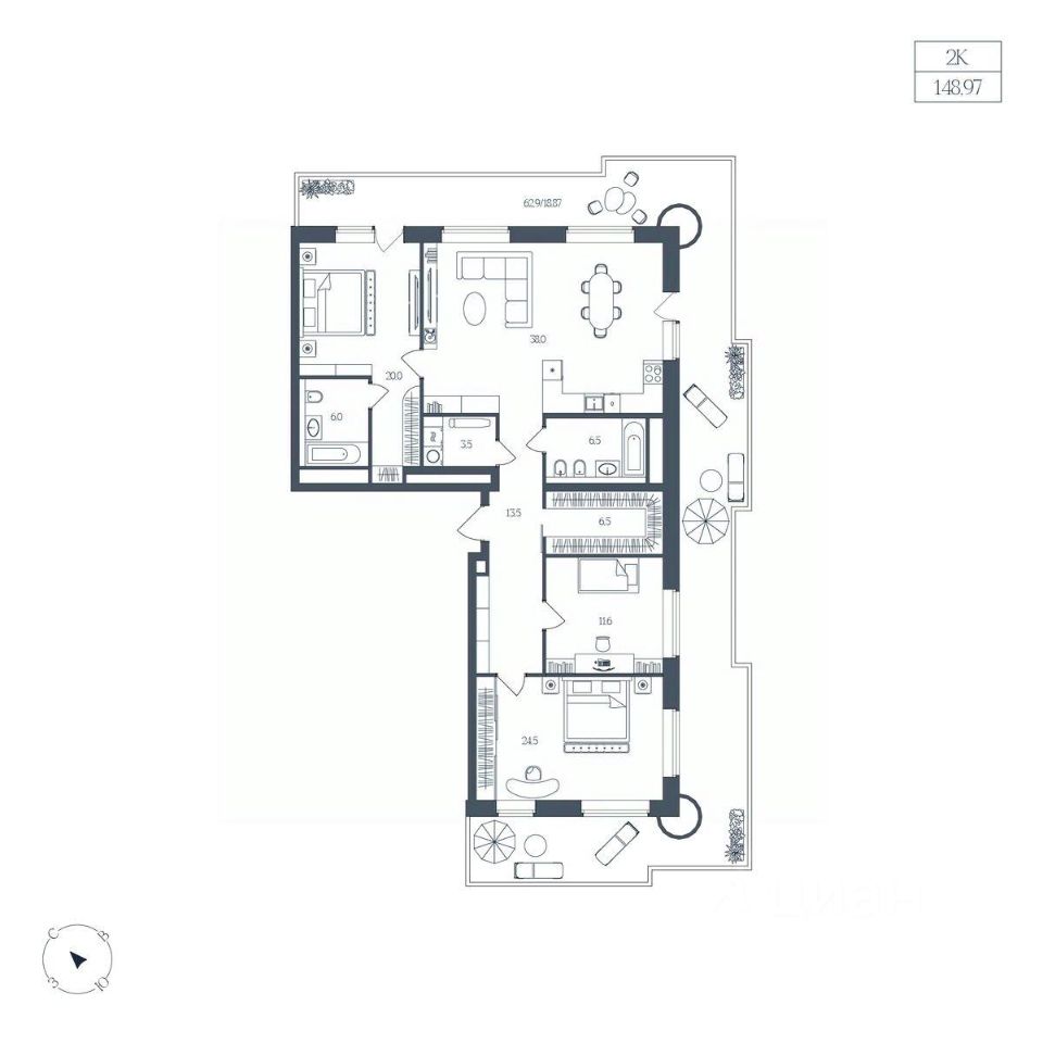 Общая площадь148,97 м2