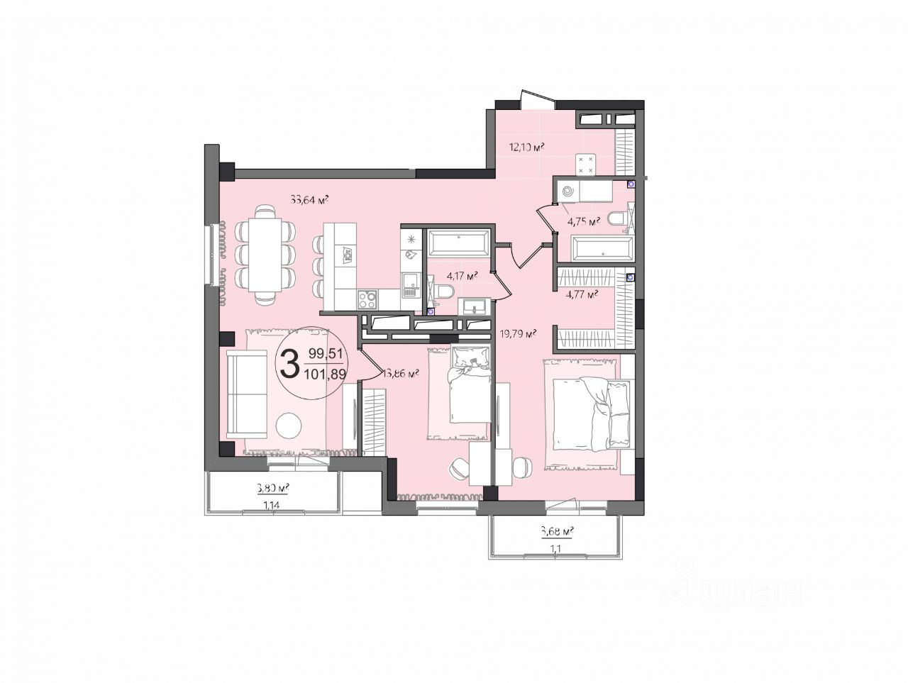продам 3-к, Героя России Яковлева А.В., гп 1116 916 680 ₽