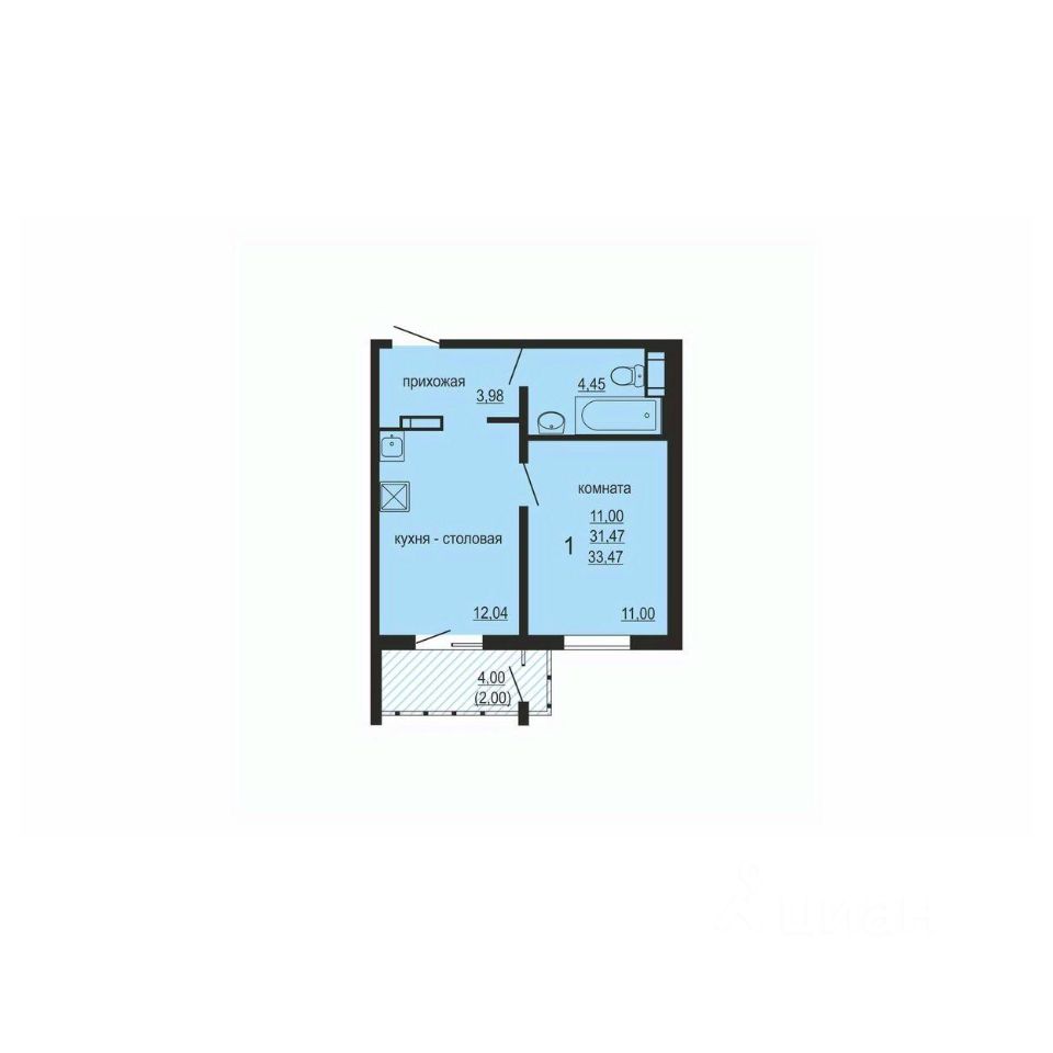 Общая площадь33,47 м2