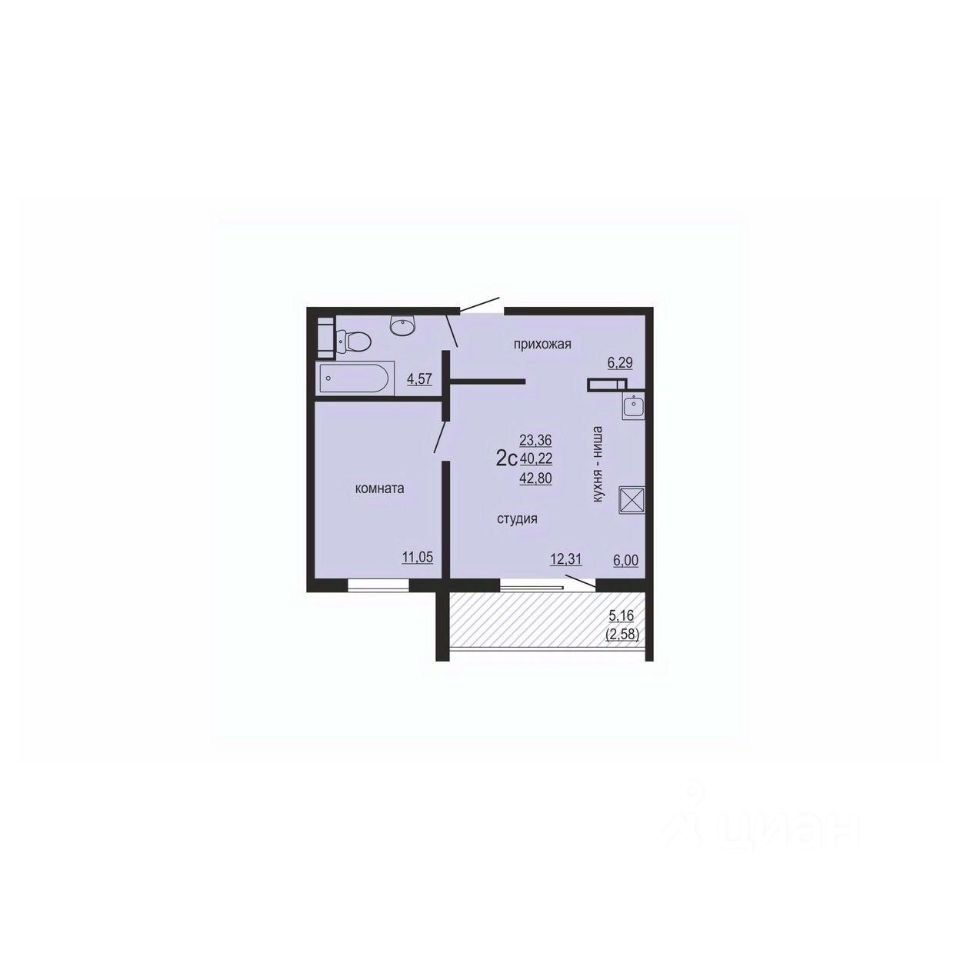 Общая площадь42,8 м2