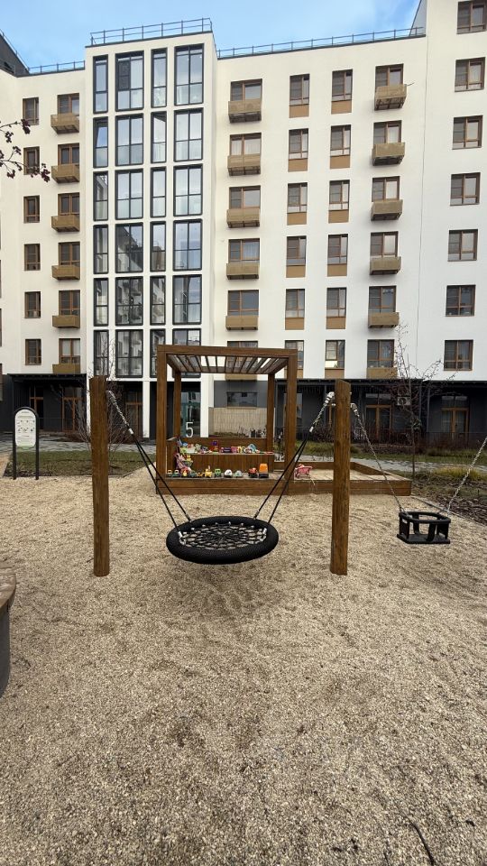 - Рядом с жилым комплексом расположена прогулочная тропа, карьер с возможностью рыбалки, мангальные зоны, пруд с лебедями.