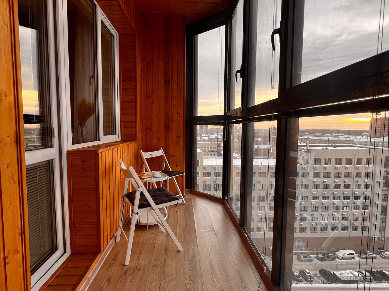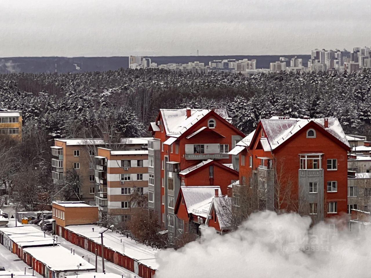 С видом на город, лесной массив и закат