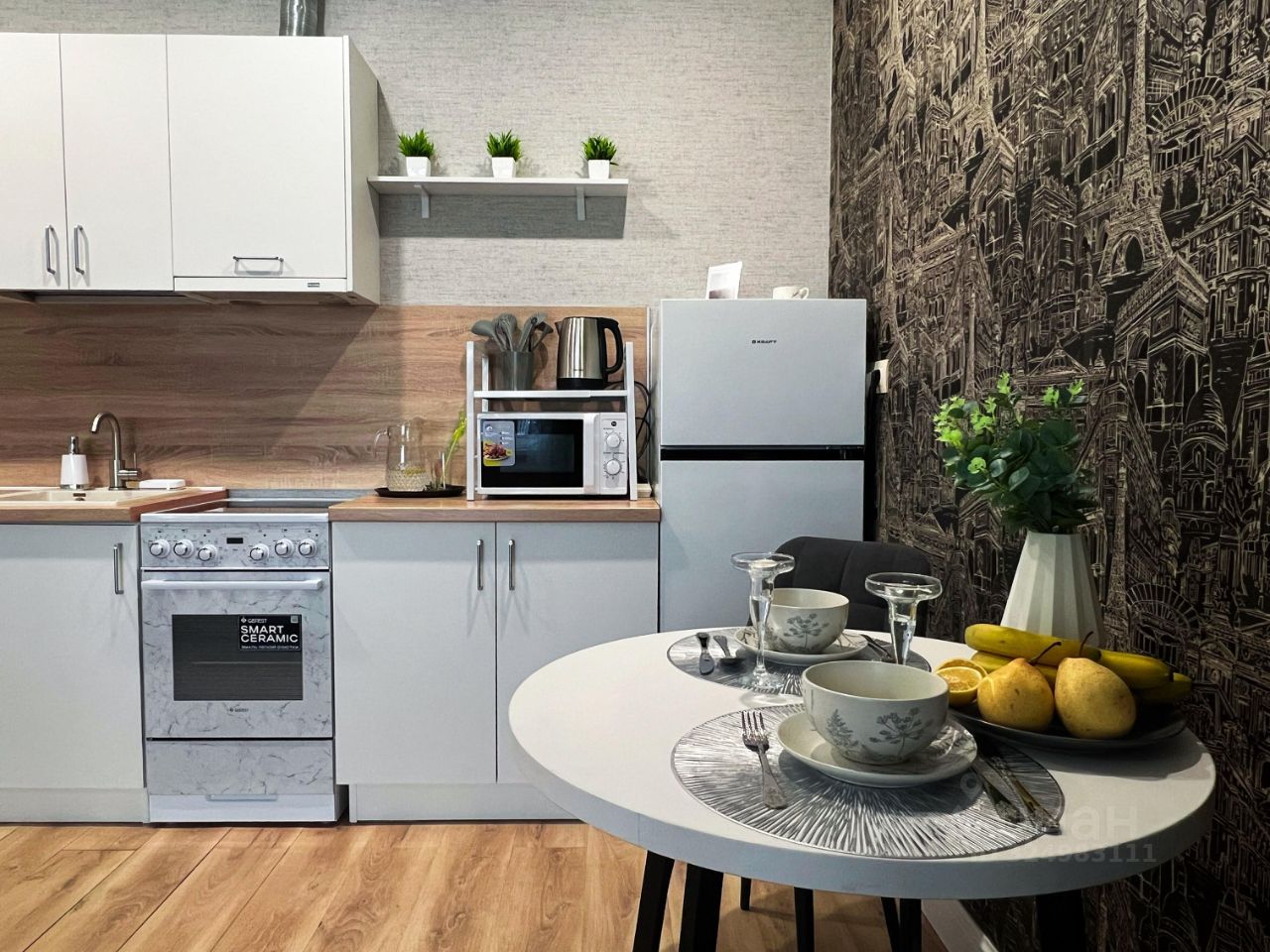 Оборудованная кухня, посуда, все для приготовления еды