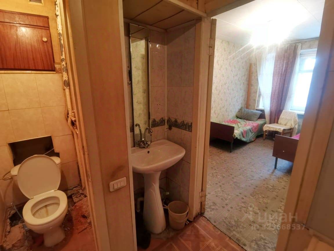 Расположена в бывшем общежитии.
