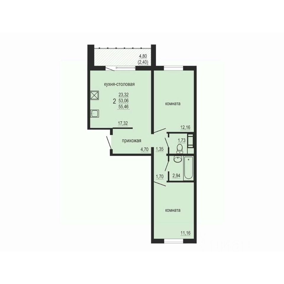 Общая площадь55,46 м2