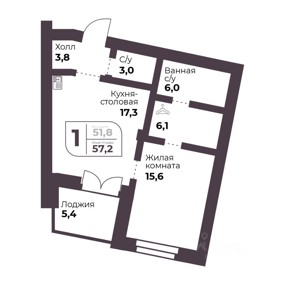 Общая площадь51,8 м2