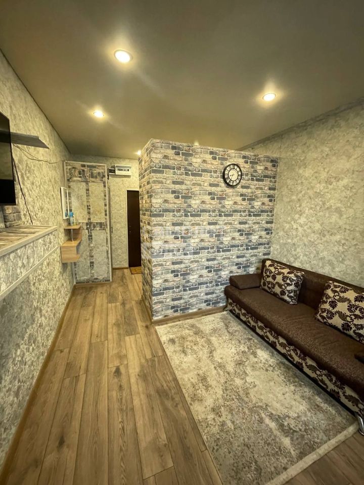 СОСТОЯНИЕ Косметический ремонт: в помещении выполнено зонирование , установлена перегородка, отделяющая зону отдыха от прихожей , настелен линолеум, поклеены современные обои , установлена металлическая дверь, натяжной потолок с точечными светильниками. Вся мебель: диван, шкаф, обеденный стол со стульями, холодильник, входит в стоимость. Этаж закрывается на ключ. На общей кухне две газовых плиты, есть место под стиральную машину. Душ с горячей водой, туалеты так же регулярно убираются и закрываются на ключ. Очень приличные славянские соседи.