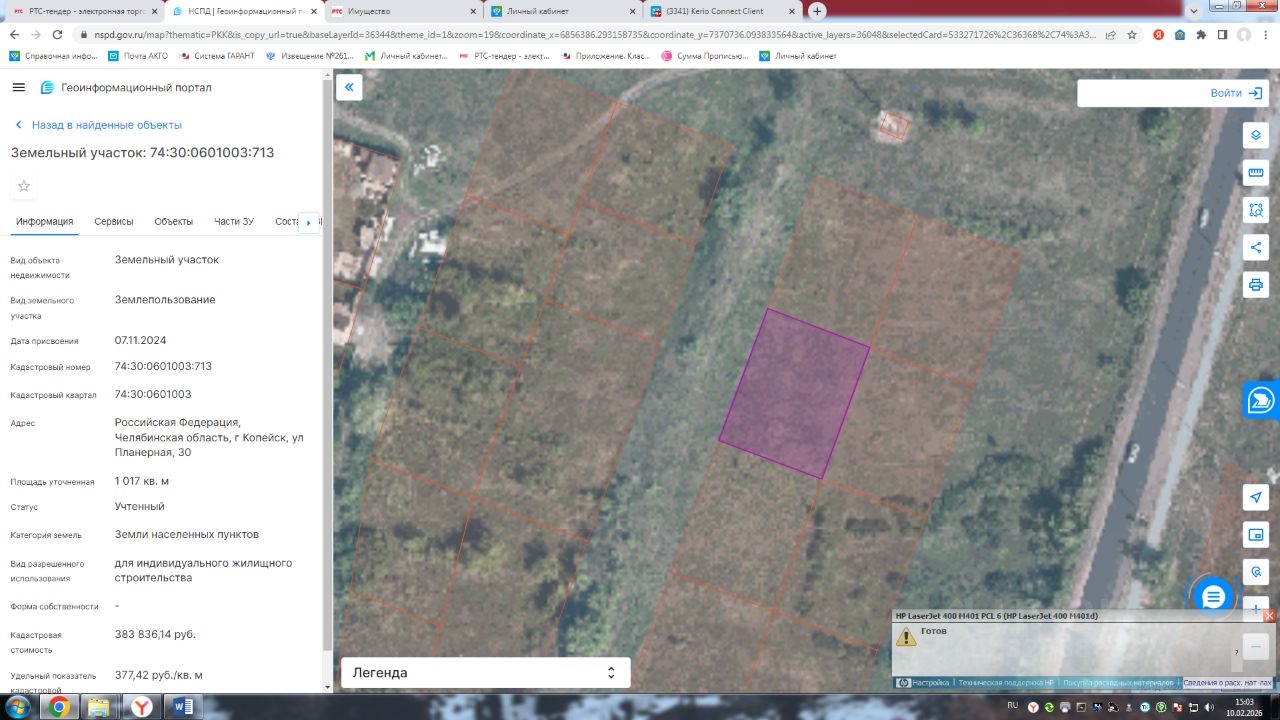 Земельный участок с кадастровым номером 74:30:0601003:713 площадь 1017 по адресу Российская Федерация, Челябинская область, г Копейск, ул Планерная, 30
