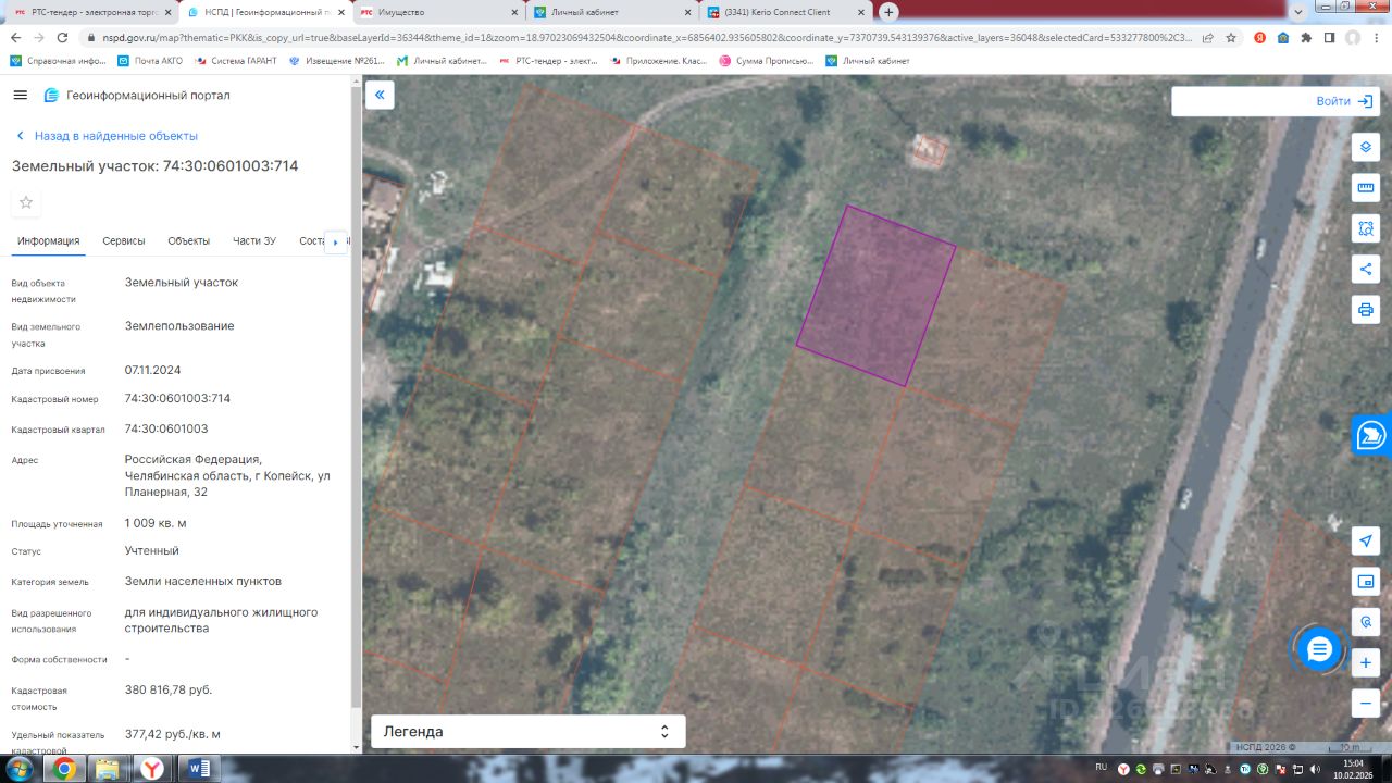 Земельный участок с кадастровым номером 74:30:0601003:714 площадь 1009 по адресу Российская Федерация, Челябинская область, г Копейск, ул Планерная, 32