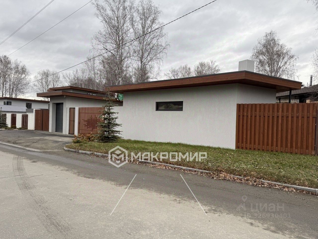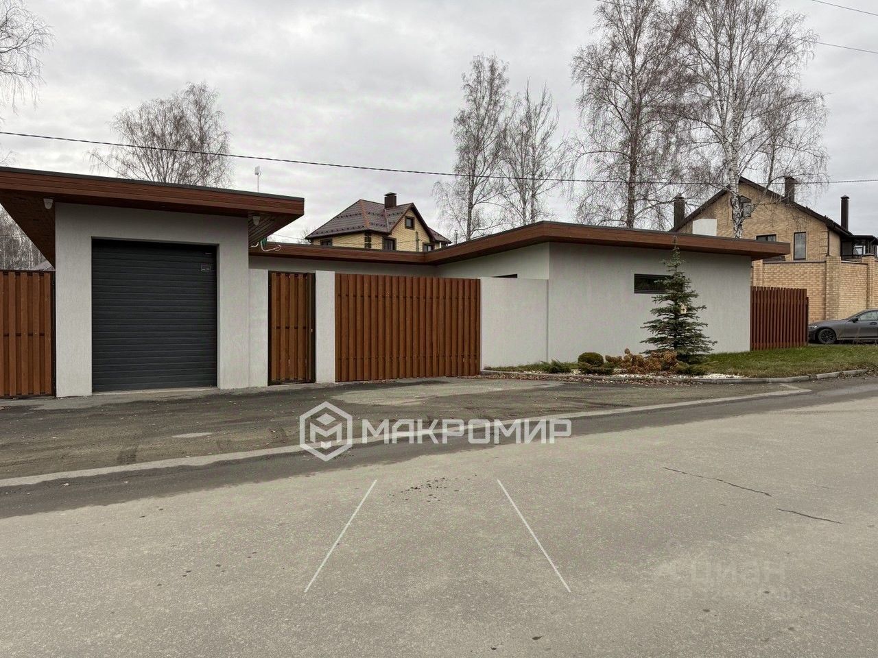 Участок и постройки: • Гараж на участке с въездом с улицы и автоматическими воротами • Зона отдыха перед домом: ухоженный газон и ландшафтная подсветка (зеленая лужайка) • Асфальтированная площадка с левой стороны — отличное место для детской площадки или летнего отдыха (либо дополнительные парковочные места для машин) • Участок огорожен современным забором, аккуратное благоустройство